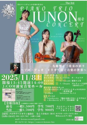 ピアノ 尾高弘美 ヴァイオリン 古沢香 チェロ 岩楯徳子 |