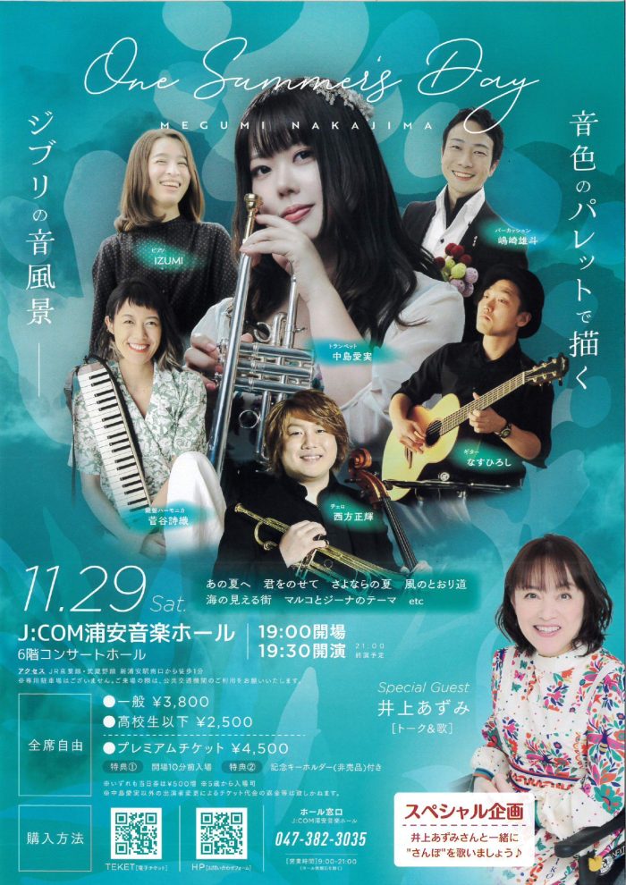 | 出演者 | 中島愛実(トランペット) IZUMI(ピアノ) 嶋崎優斗(パーカッション) 菅谷詩織(鍵盤ハーモニカ) 西方正輝(チェロ) なすひろし(ギター) スペシャルゲスト 井上あずみ(トーク&歌) |